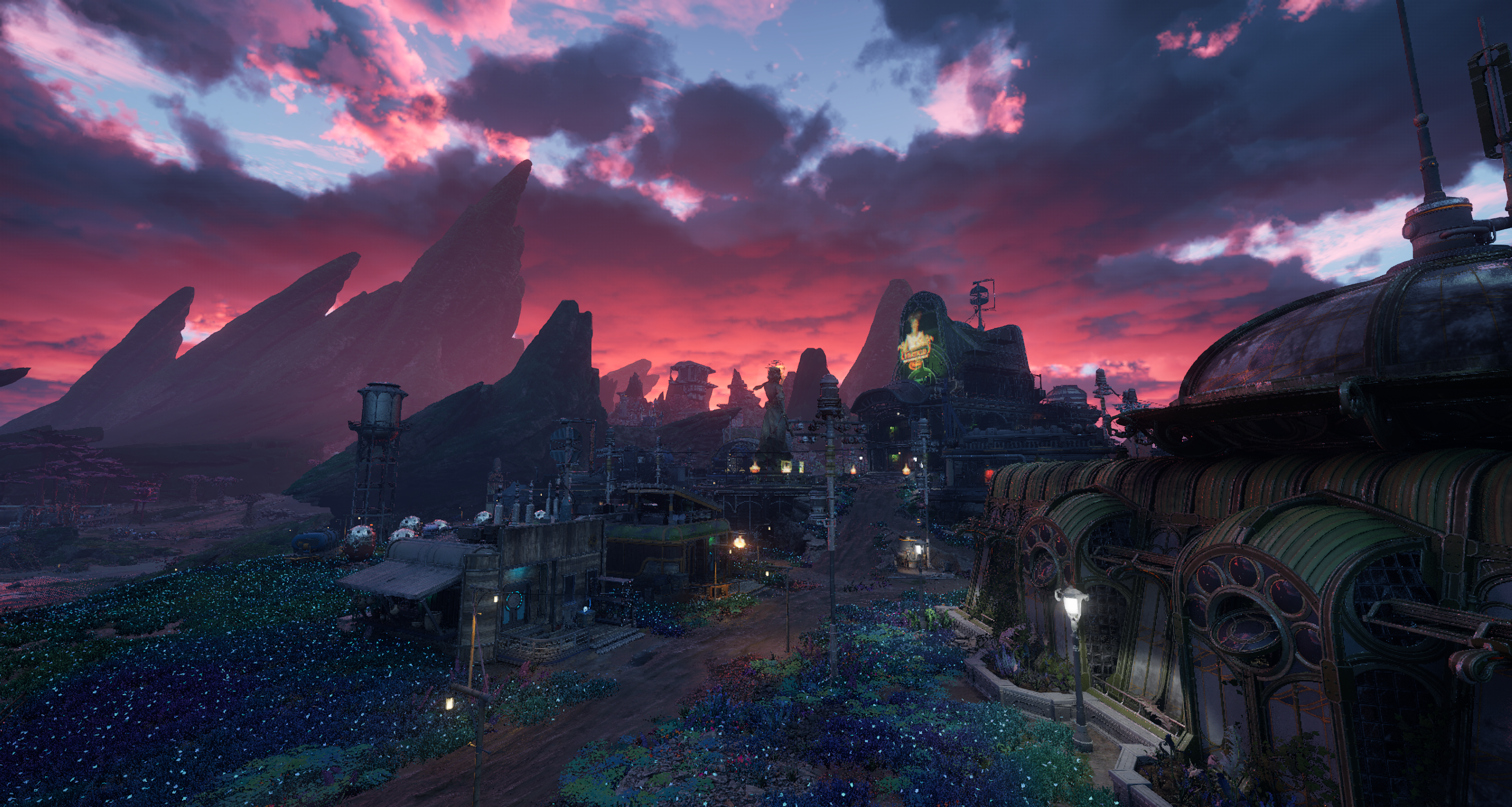 The custom class and its core functionality, including support for applying weather states as data assets and controlling the celestial lights through animation curves, was created by programmer Matt Campbell, initially for use on Avowed. When the class was brought over to TOW2, further additions and code support were provided by programmer Michael Edwards. I planned and created all of the material and volumetric effects, and all of the additional blueprint logic controlling them. Later on, fellow technical artist Weston Mitchell had the unenviable task of nativizing my BP functions into C++ for sake of CPU performance.