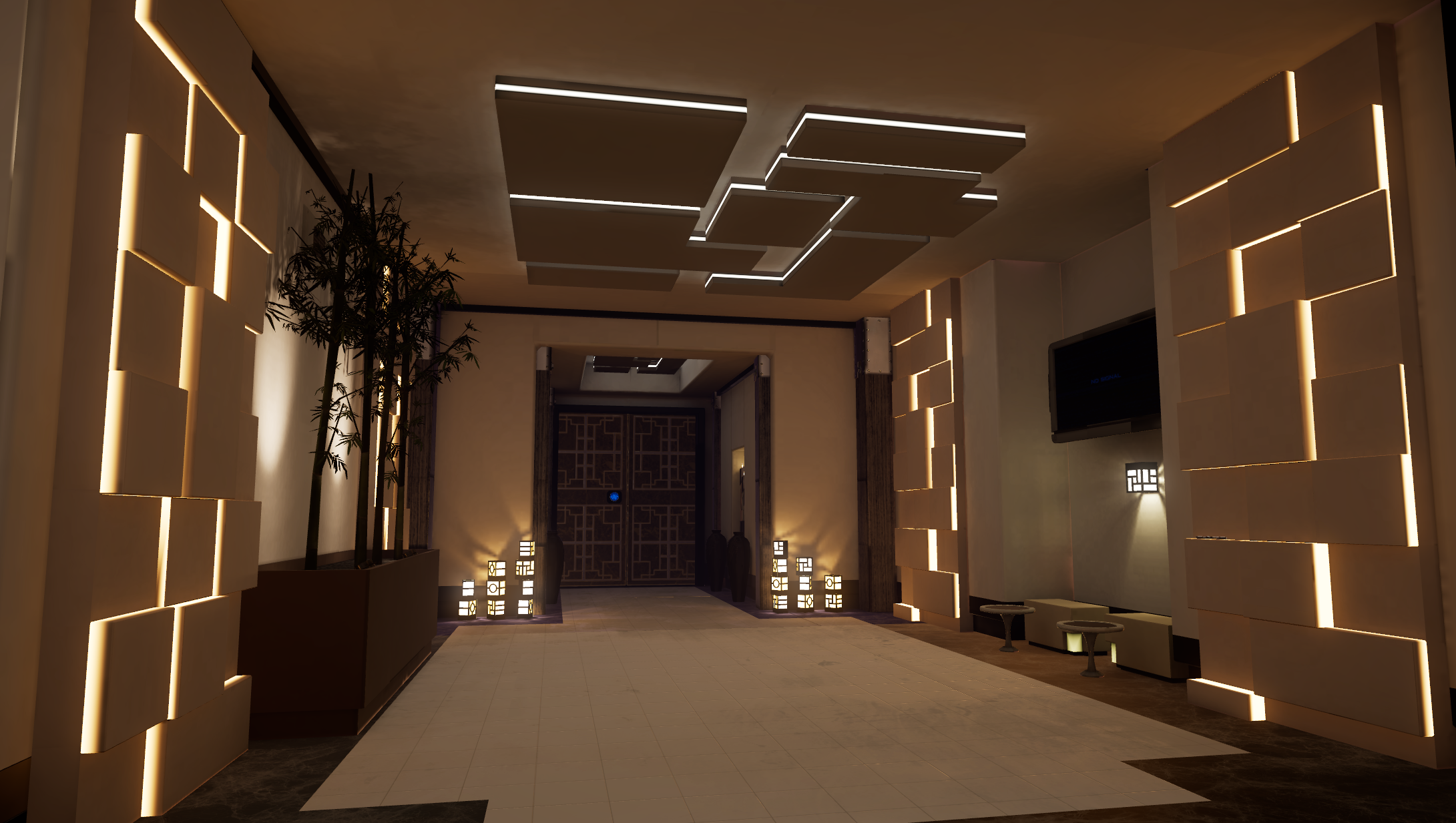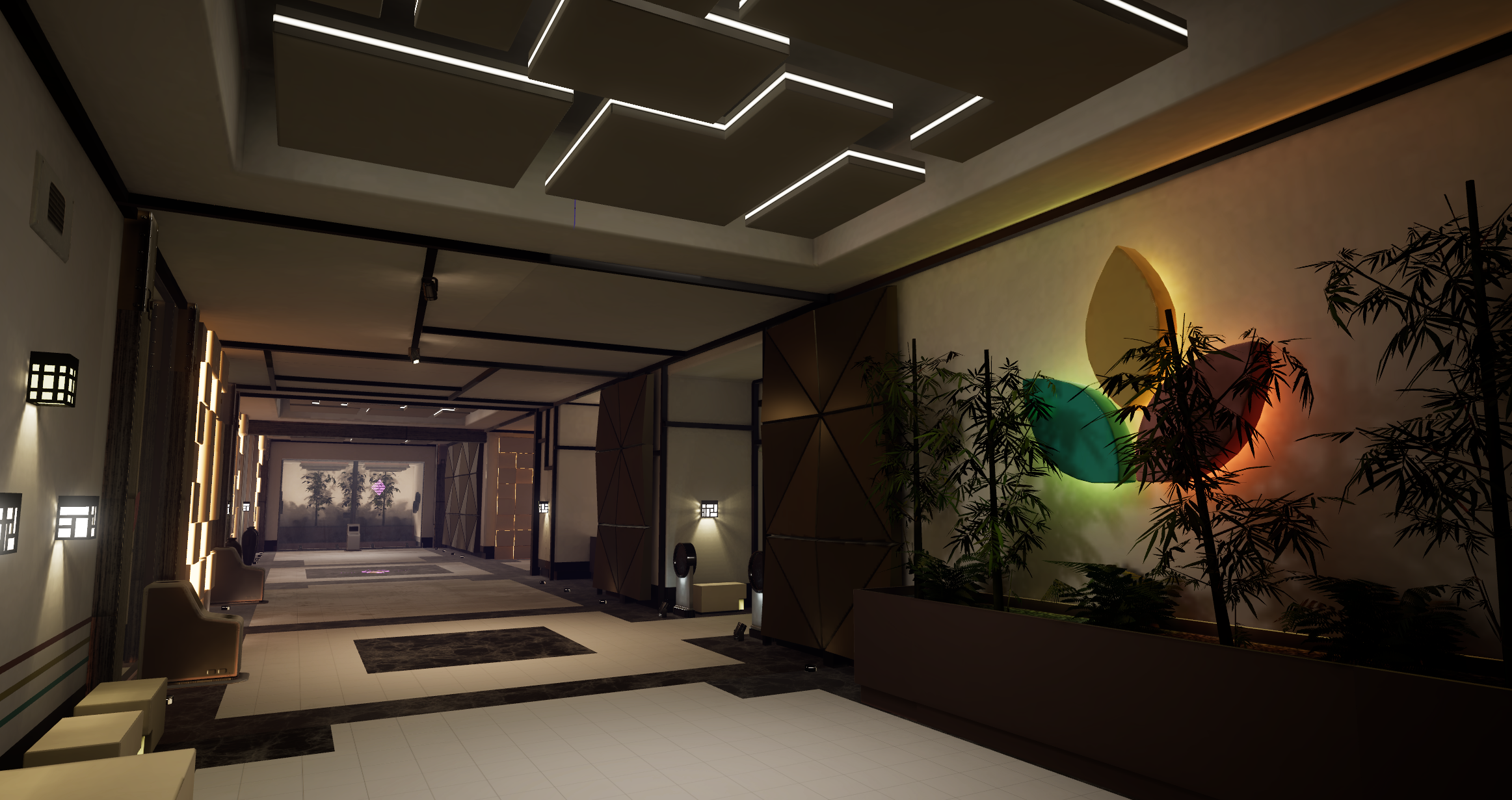 Raw Data’s main hub is the ‘Show Room.’ It was a huge undertaking for a first-time lighting artist like me. When the player first enters, the entire place was to be powered-off, dark, and with the window closed. The player was then to turn on the power, which also opens the window. Given our performance constraints and reliance on baked lighting, this took a lot of planning and compromise to get it to work in-game.